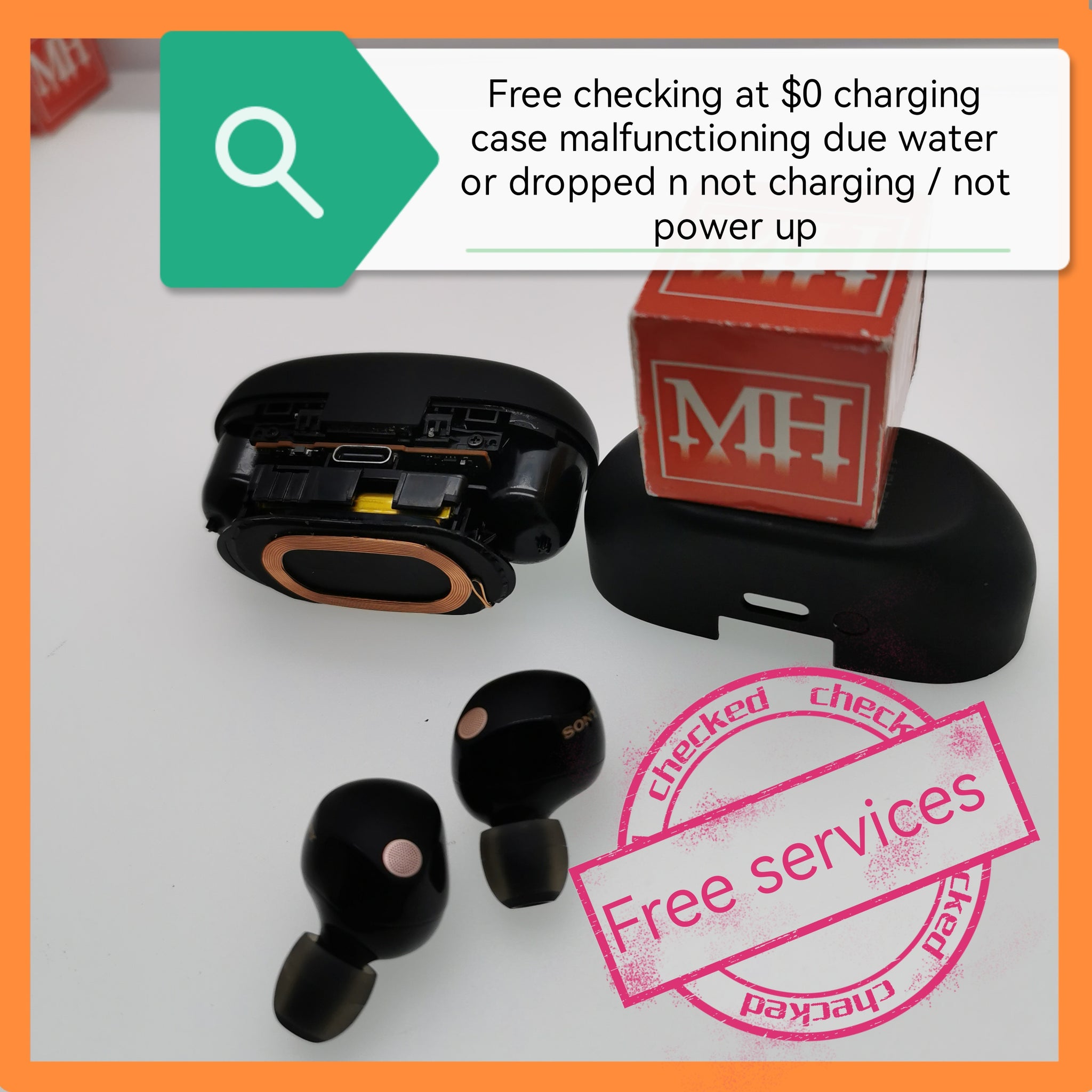Free checking Sony wf-1000xm5 charging case no power up n not charging due water or dropped also buds battery replacement Apple Sony Samsung Sennheiser JBL Jabra etc models