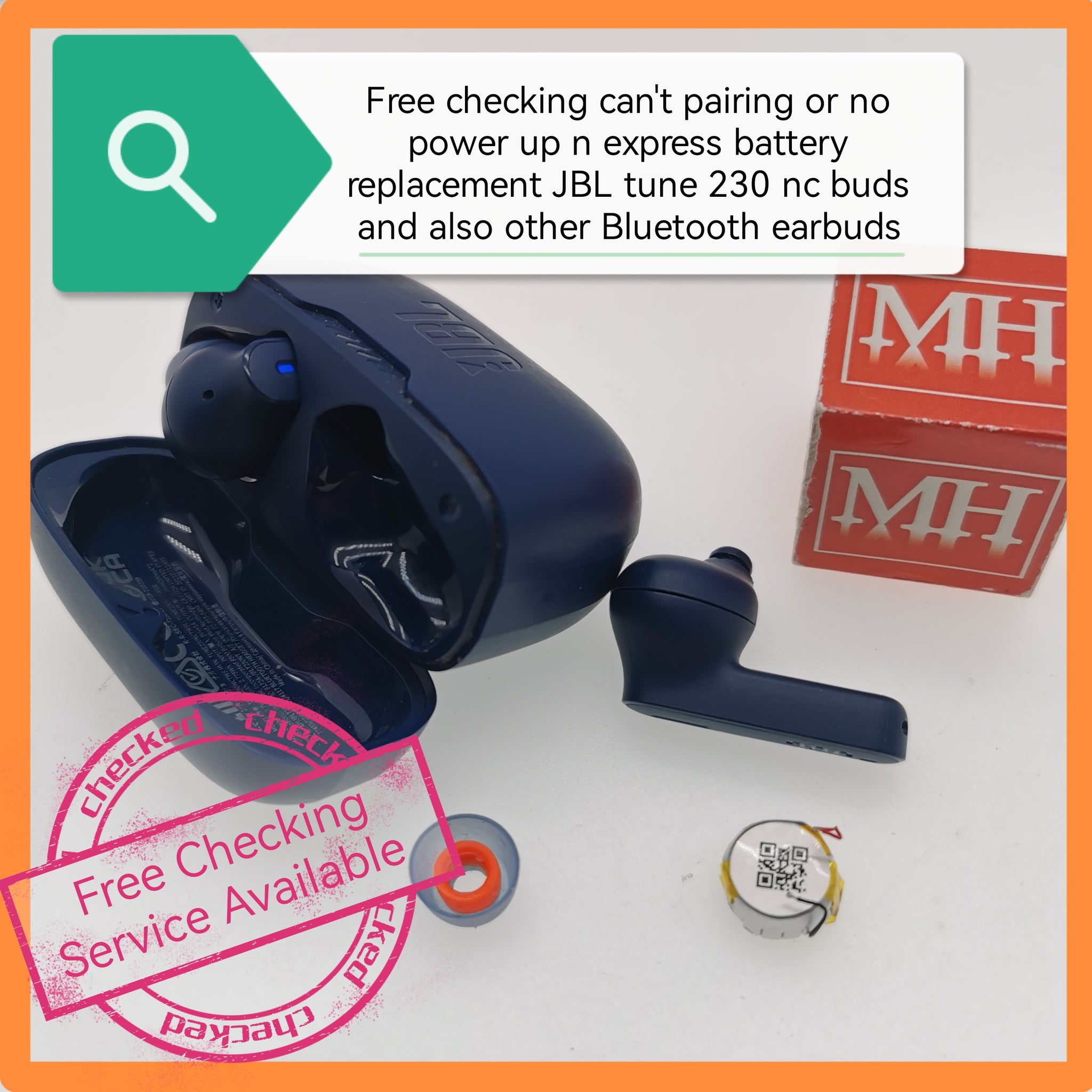 Free checking can't pairing or no power up n express battery replacement JBL tune 230 nc buds and also other Bluetooth earbuds