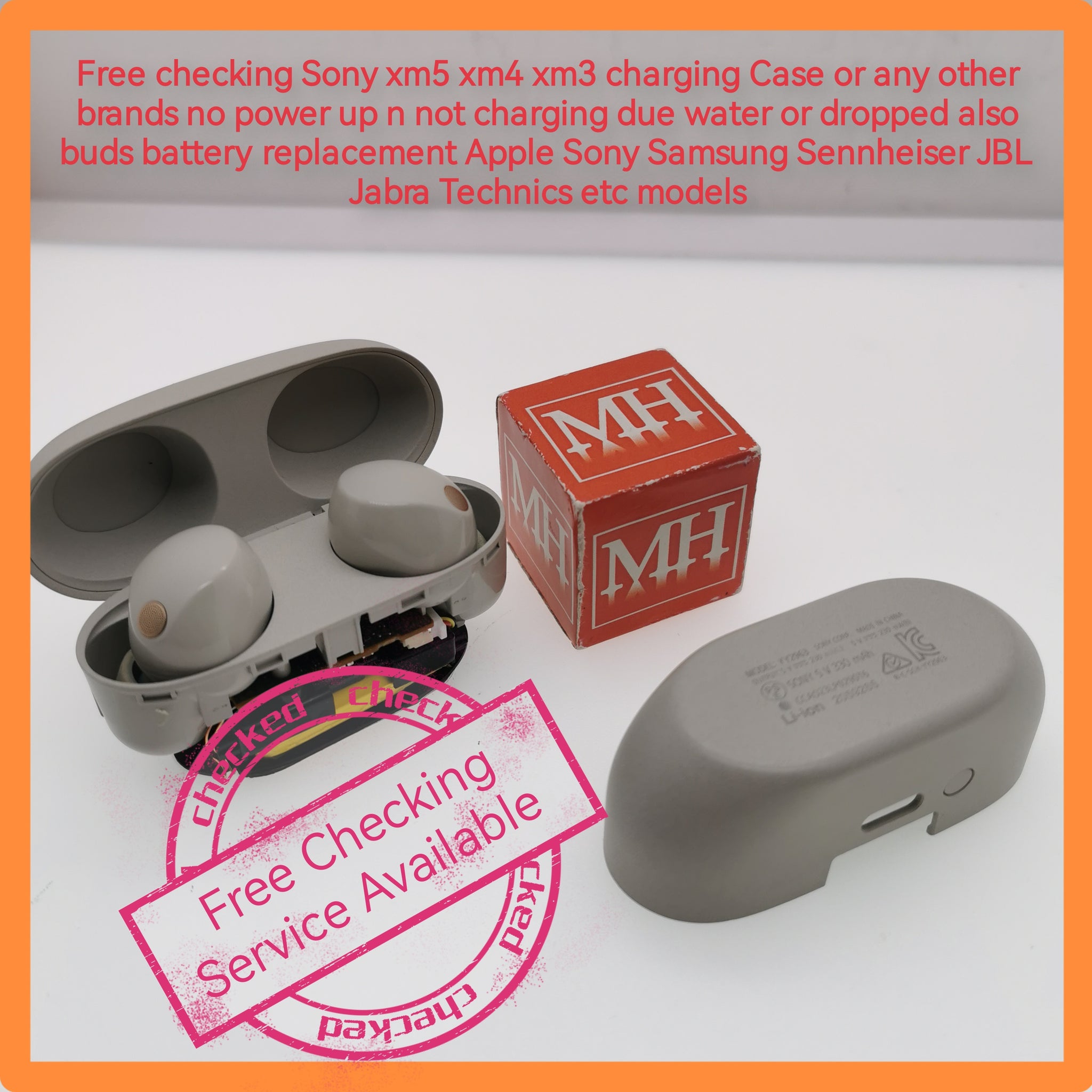 Free checking Sony xm5 xm4 xm3 charging Case or any other brands no power up n not charging due water or dropped also buds battery replacement Apple Sony Samsung Sennheiser JBL Jabra Technics etc models