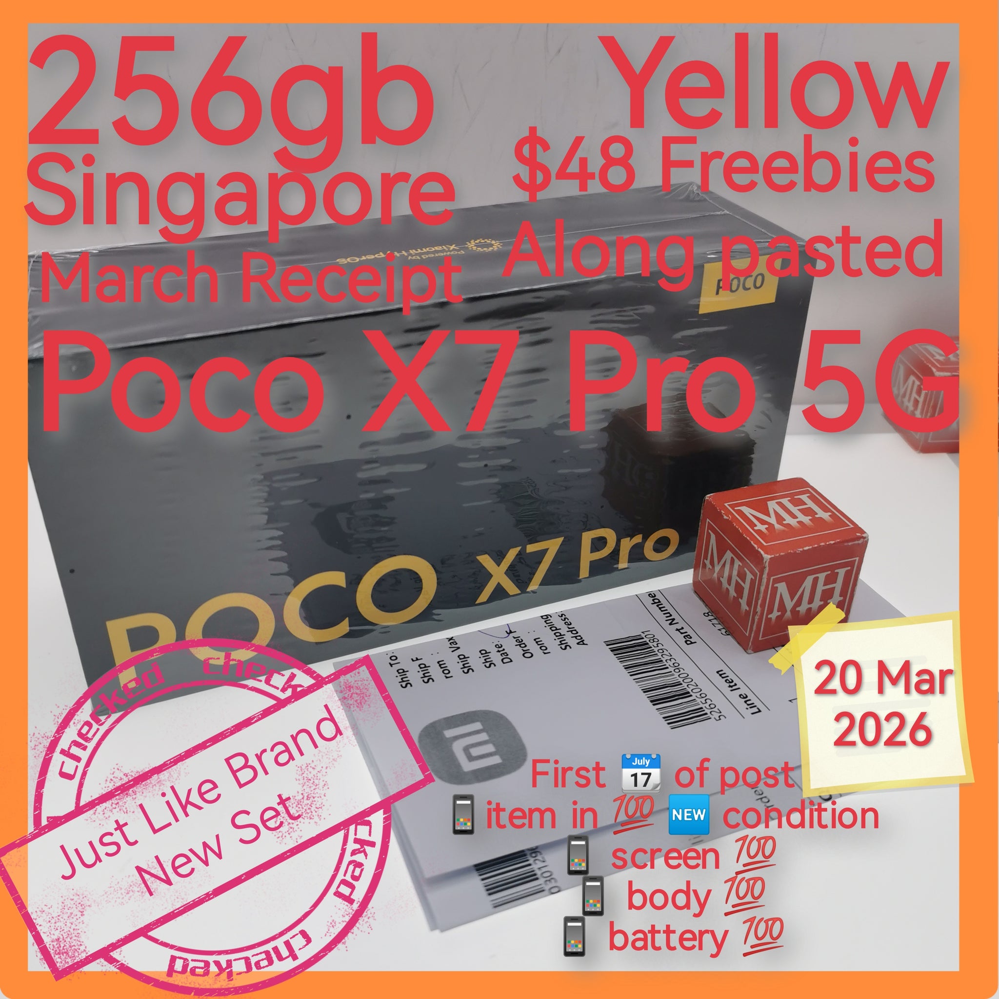 256gb march 2026 receipt Singapore Poco x7 Pro 5G yellow with $48 freebies warranty full set