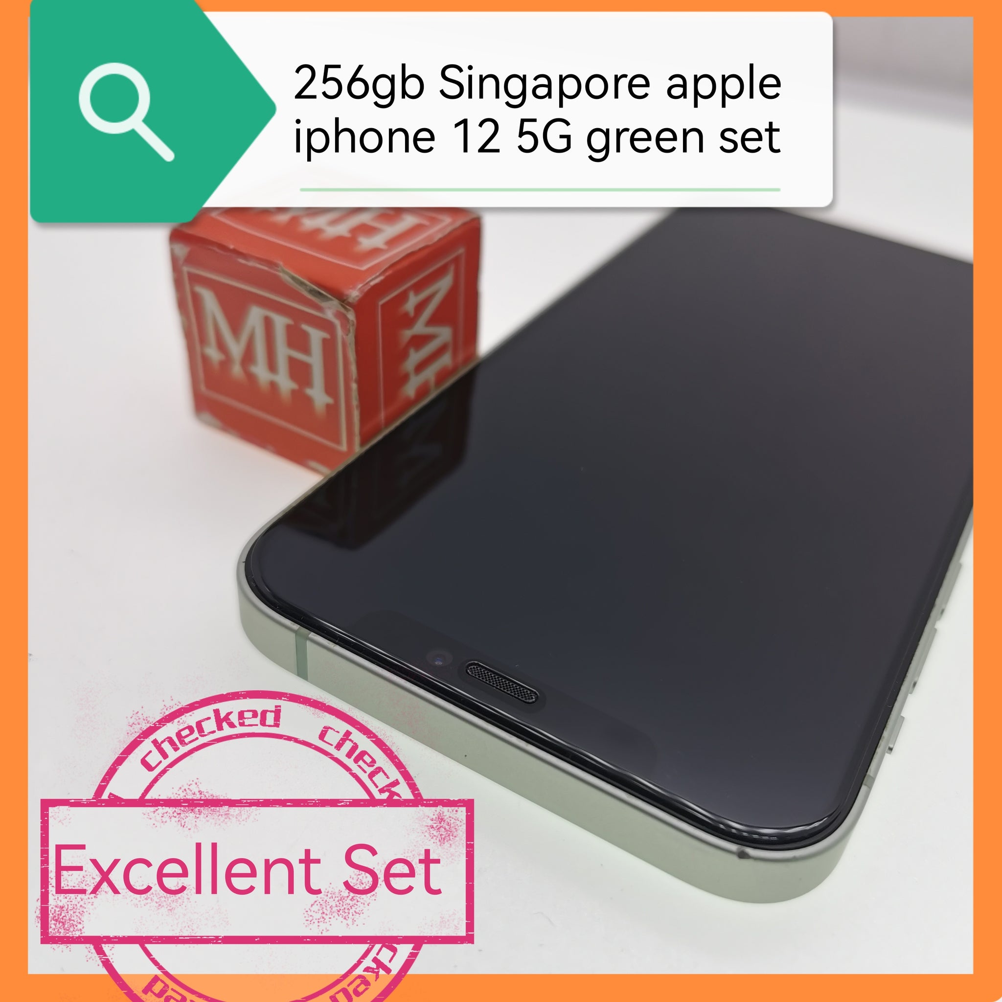 256gb Singapore apple iphone 12 5G green with glass set