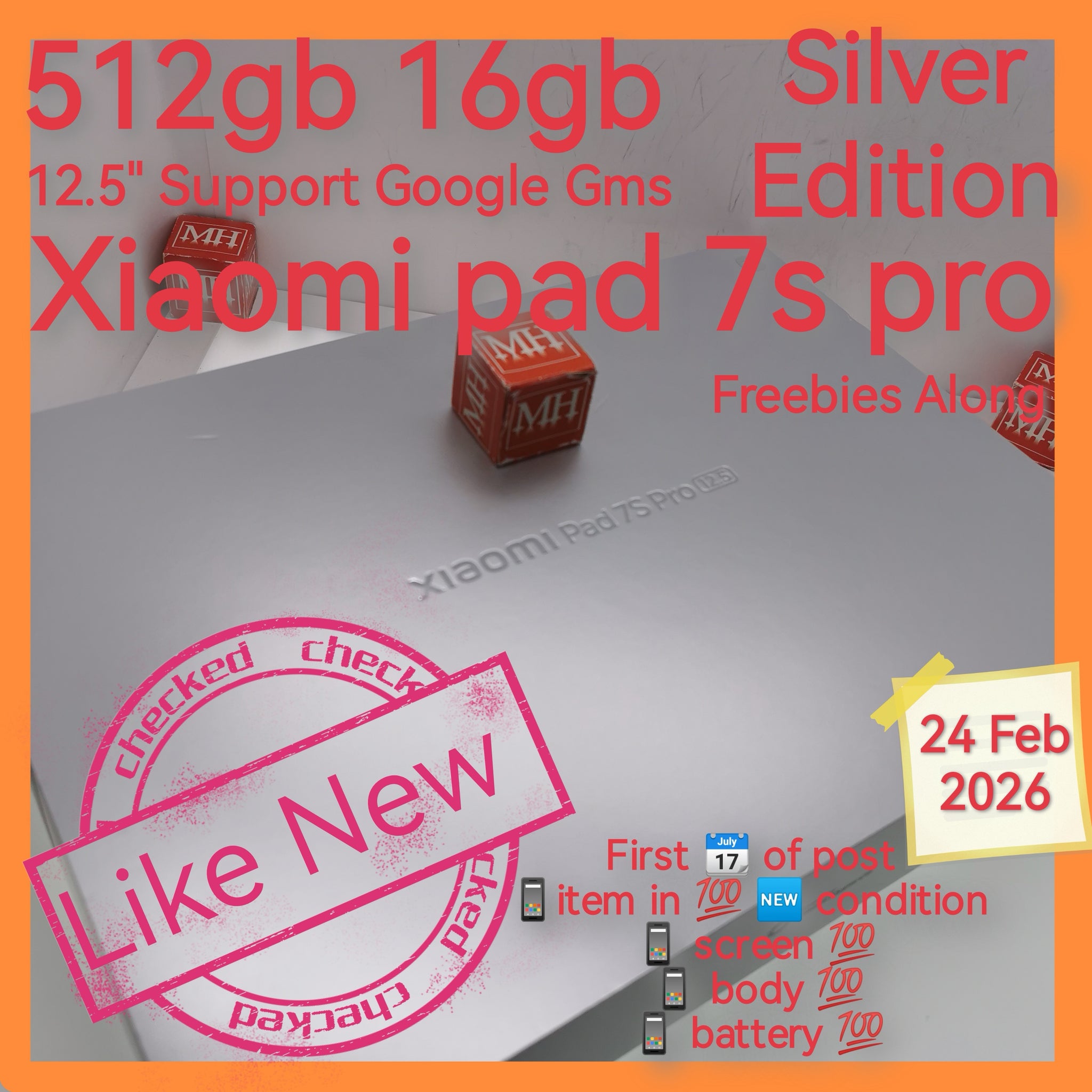 512gb 16gb 12.5" big Xiaomi pad 7s pro silver support google playstore with freebies full set