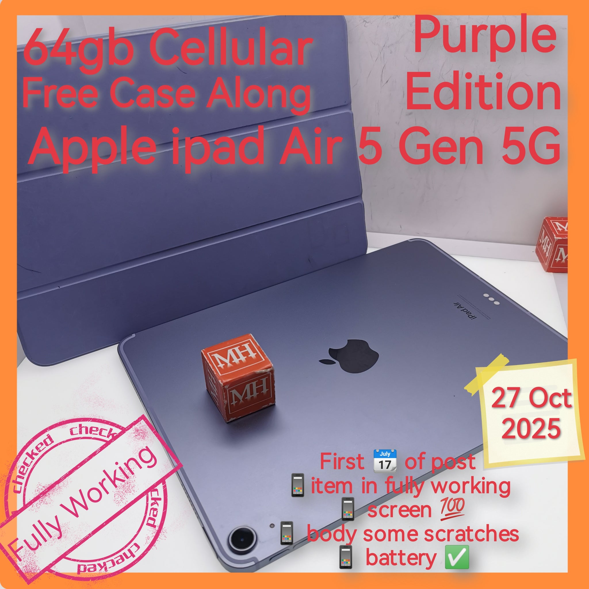 64gb cellular Singapore apple ipad air 5 Gen 5G purple with case set