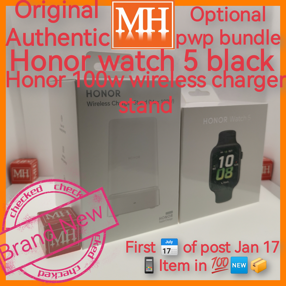 Sealed honor watch 5 black+PWP honor wireless charging stand 100w optional bundle promo new set